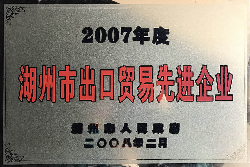 2007年度湖州市出口貿(mào)易先進(jìn)企業(yè)